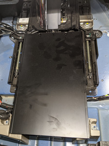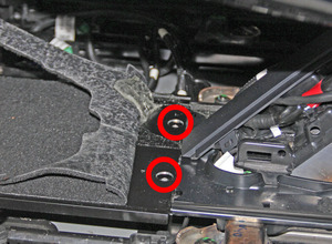 - Remove the carpet from the 2nd row seat sliding plate. Remove remaining adhesive residue with IPA wipes.