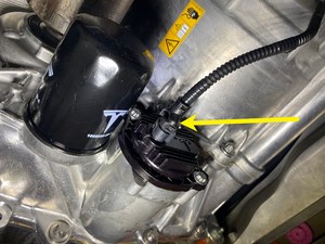NoteTesla recommends that the oil filter is replaced with a new one upon removal. Any oil filter with visible corrosion or leaks must be replaced.NoteSpin clockwise, 3 Nm + 135 degrees Lubricate seal prior to installation