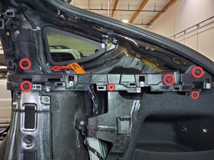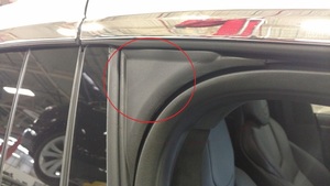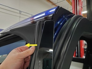 - Remove masking tape from the RH lower C-pillar and from the race tracks