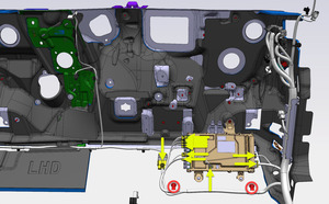 Secure LH center console lower bracket to IP carrier