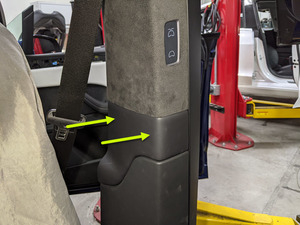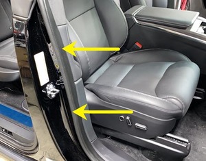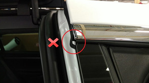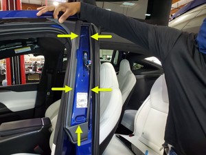 - Fully seat LH front door seal along LH B-pillar trims