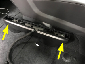 Note2x clips, Lift front of panel up to release clips, Lift rear of panel and slide out from behind seats