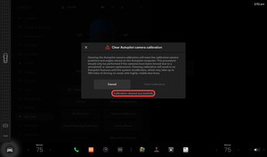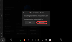 NoteVia center display > Controls > Service > Camera Calibration, Select Clear Calibration, Verify calibration was cleared successfully, Wait for prompt to disappear automatically before continuing