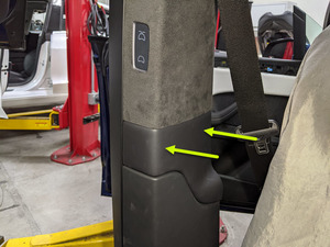 - Release the clips (x5) that attach the upper portion of the LH lower B-pillar trim to the LH upper B-pillar trim.