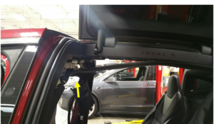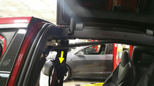- Release the clips (x3) and magnets (x2) that attach the LH upper B-pillar trim to the B-pillar, and then disconnect the LH falcon wing door button electrical connector.