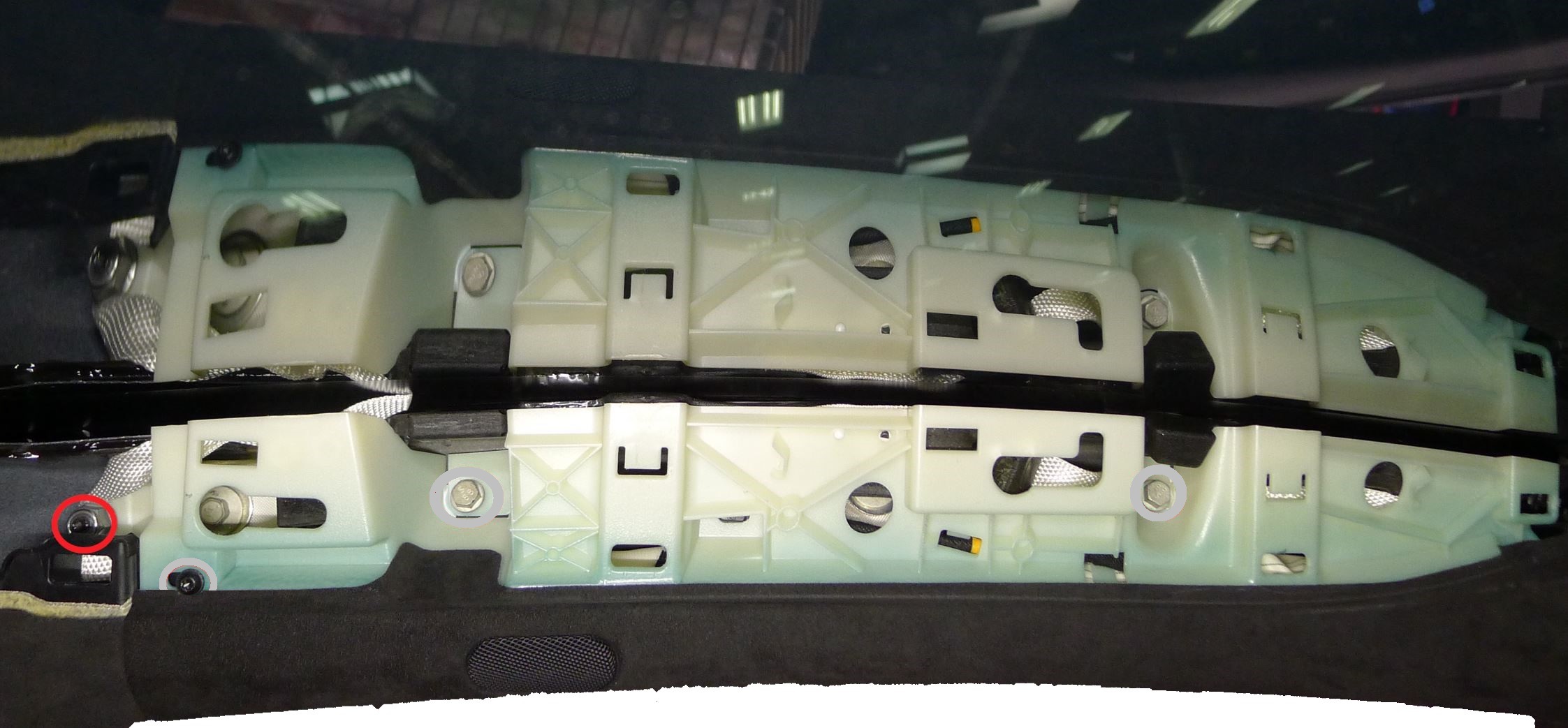 Install the screw that attaches the LH front of the headliner to the vehicle.