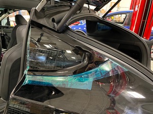 - Apply tape to the vehicle body around the LH rear quarter glass.