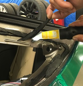 - Clean excess urethane from the LH quarter panel with Isopropyl Alcohol (IPA).