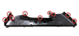 - Position the front seat riser RH cover onto the riser, and then secure the clips (x9) that attach the cover to the riser.