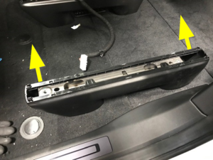- Release the clips (x9) that attach the front seat riser RH cover to the riser, and then remove the cover from the vehicle.