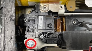 - Remove the HV battery negative contactor from the mounting studs (x2) and guide pins (x2), and out of the HV battery.