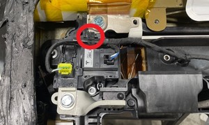 - Release the edge clip that attaches the electrical harness to the HV battery negative contactor.