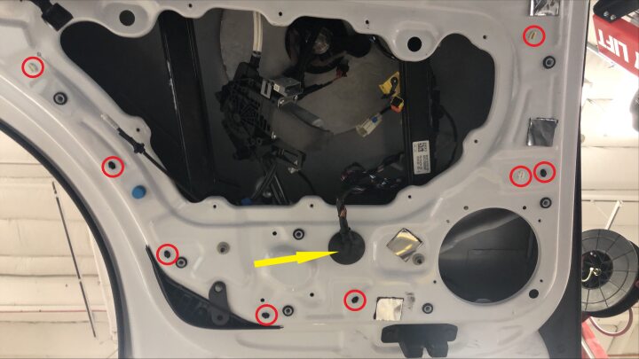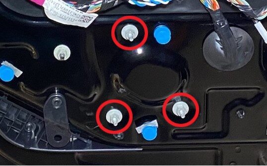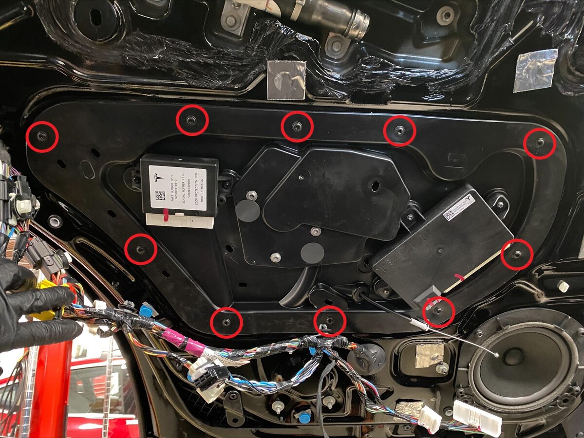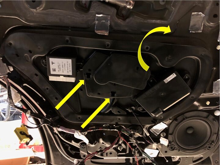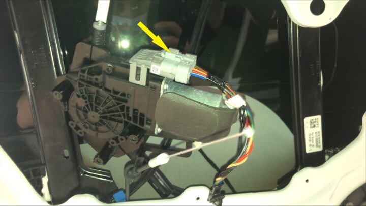 Note2x tabs, Pull LH closeout panel away from door and lift window motor up to release