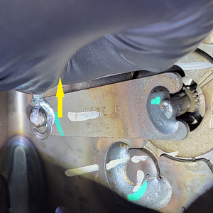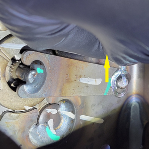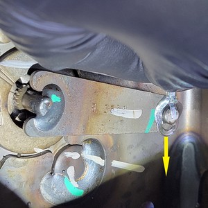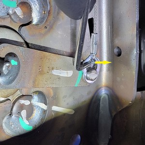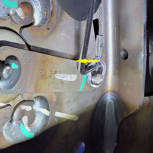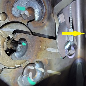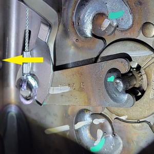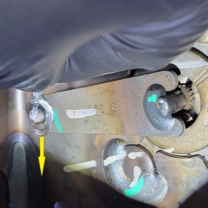 Bend the locking tab on the LH 3rd row seat recliner cable inner eyelet outwards, and