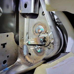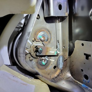seat recliner cable outer eyelet outwards, and then push the eyelet down while prying