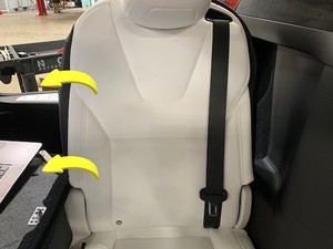 - Release the J-hook clip that attaches the upper half of the LH 3rd row seat upholstery to the seat.