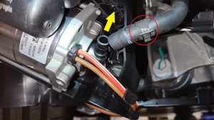 - Release the locking tabs, and then disconnect the electrical harnesses (x2) from the air suspension compressor.