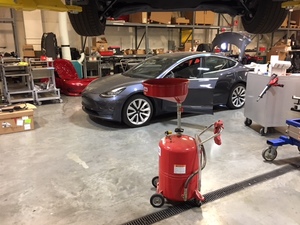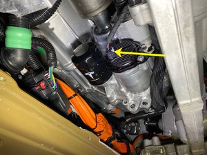 NoteTesla recommends that the oil filter is replaced with a new one upon removal. Any oil filter with visible corrosion or leaks must be replaced.NoteSpin counterclockwise, 3 Nm and 135 degrees, Allow oil to drain.