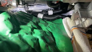 NotePlace funnel and absorbent material underneath coolant hose.