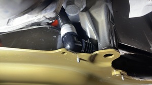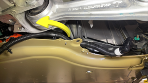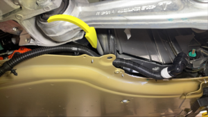 Securing clip attaching PCS hose to HV battery.