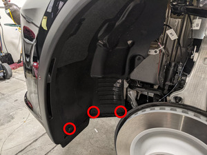Secure clips securing wheel house liner to front skid plate.