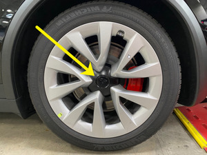 Install LH front wheel center cap.