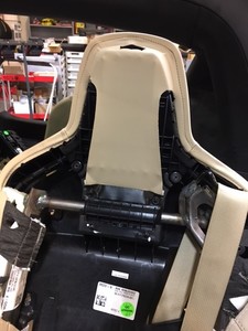 - Position the LH 2nd row seatbelt assembly onto the seat back, and then maneuver the seat buckle through the seat back to install it into the seat.