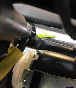 - Install a zip tie that attaches the LH 2nd row seat harness to the seatbelt assembly.