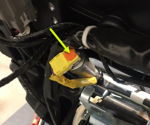 - Remove the zip tie that attaches the LH 2nd row seat harness to the seatbelt assembly.