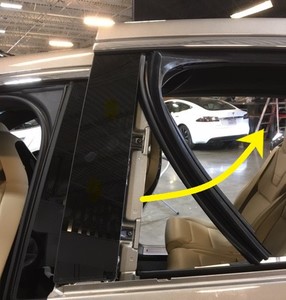 - Install the LH rear door fixed door glass seal onto the LH front rear door applique.