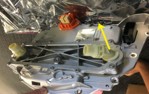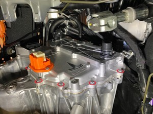 - Remove the bolts (x2) that attach the phase out cover to the front drive unit gearbox, and then use a plastic trim tool to remove the cover from the gearbox.