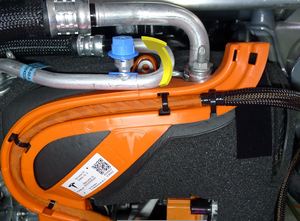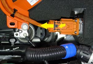 Disconnect HV harness connector from AC compressor