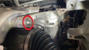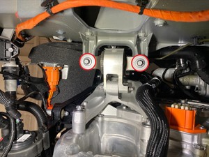 Release the HV heat pump bracket from the compressor eyelet