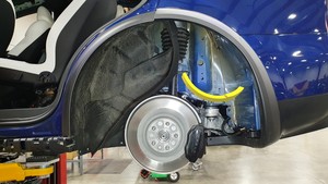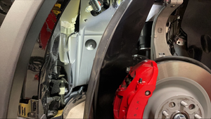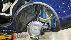 NoteOnce the clips are removed, rest the arch liner on the rotor back plate to create working space.