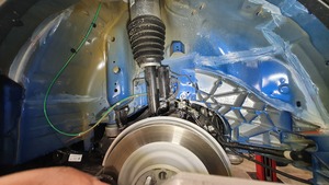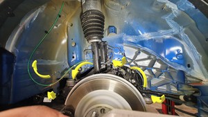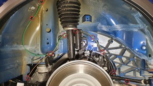 NoteManeuver the rear air suspension lines through wheel arch housing towards both rear struts.
