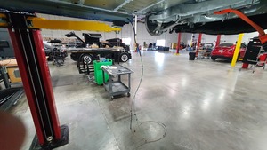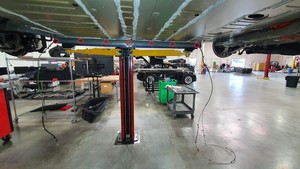 - Raise and support the vehicle on a 2 post lift. See Raise Vehicle - 2 Post Lift.