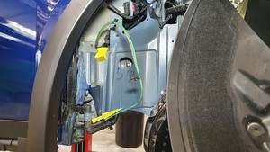 - Install the clips (x3) that attach the rear air suspension lines to the LH rear wheelhouse.