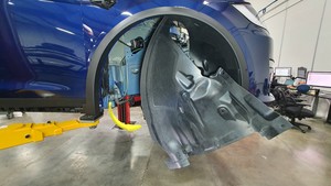 - Fasten the clips that attach the rear portion of the RH front wheel liner.