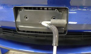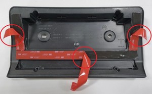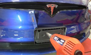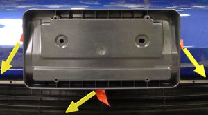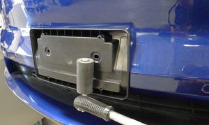 - Press the front license plate bracket onto the front fascia to wet-out the double-sided tape.