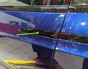 - Release the LH front door latch by pressing on the exterior door handle.