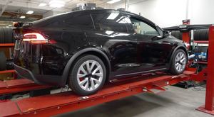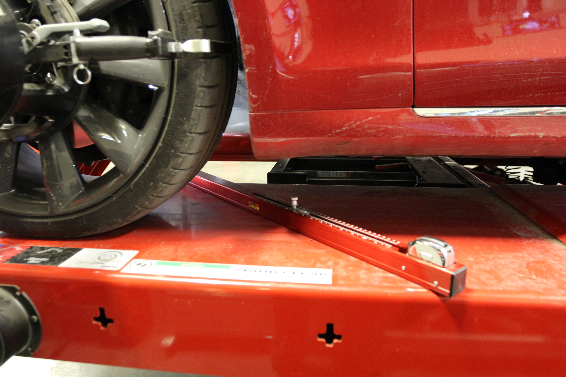- With the help on an assistant, align the vehicle to the alignment rack ramps, drive vehicle onto the alignment rack, and then shift into Park.