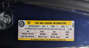 NoteRefer to the "Tire and Loading Information" label located on the driver side B-pillar.