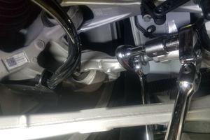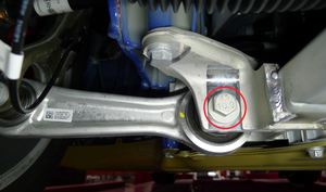 Notex1 bolt, 21 mm; x1 nut, 22 mm; Torque 130 Nm per side. Adjust if necessary. Set the torque wrench to 101 Nm with the adapter in line with wrench.