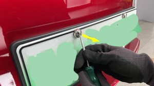- Cut a slit on each bolt cover, and then use a screwdriver to remove the bolt covers (x4) from the license plate bracket.