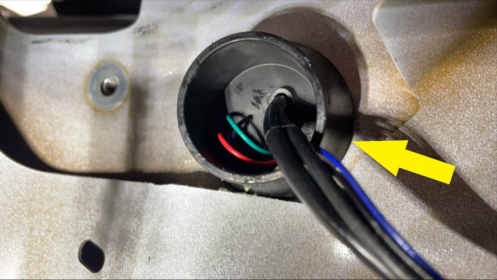 Secure charge port door harness grommet onto body