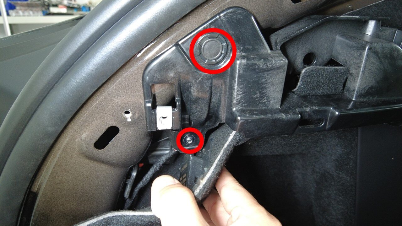 Install LH trunk side trim bracket