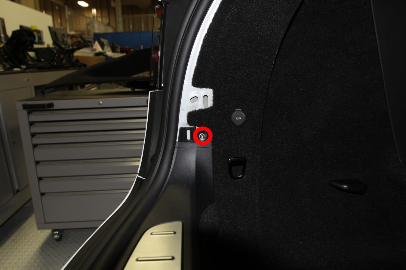 Install bolt securing charge port door to vehicle body