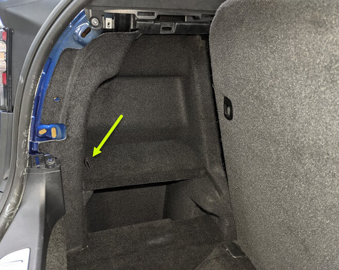 Install LH trunk side trim carpet