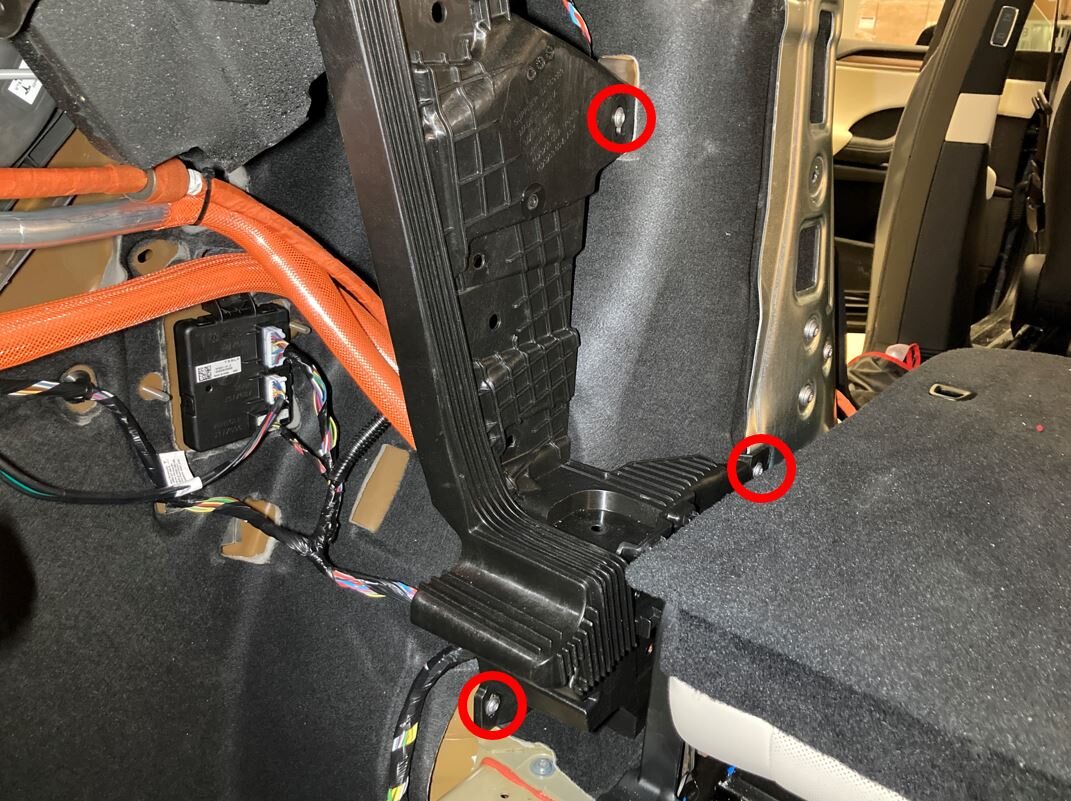 Note9x bolts, T40, 27 Nm, To avoid removal of 3rd row seat frame, Use hex bit ratchet to fully seat bottom 2 bolts prior to torque