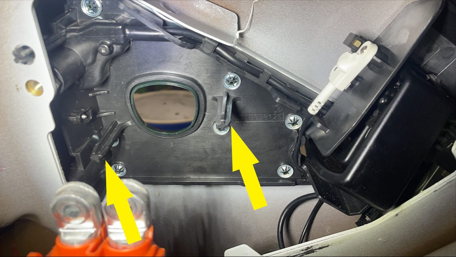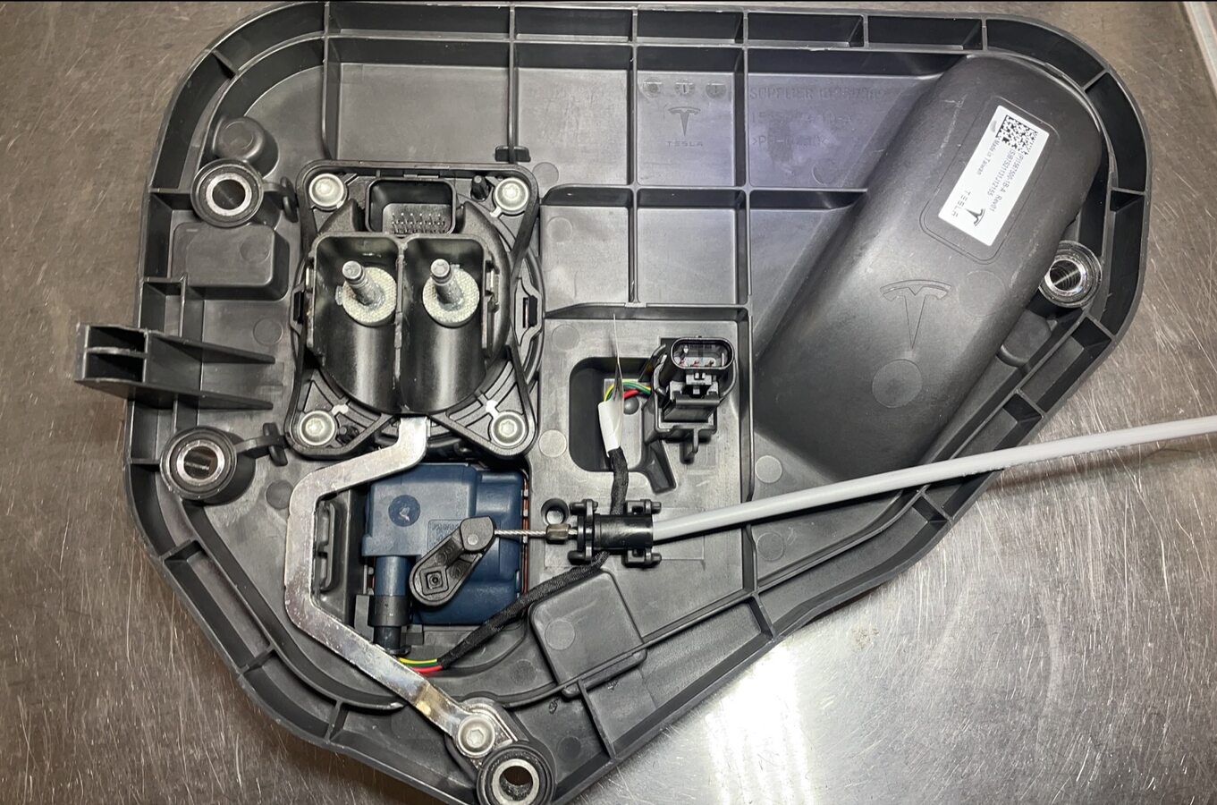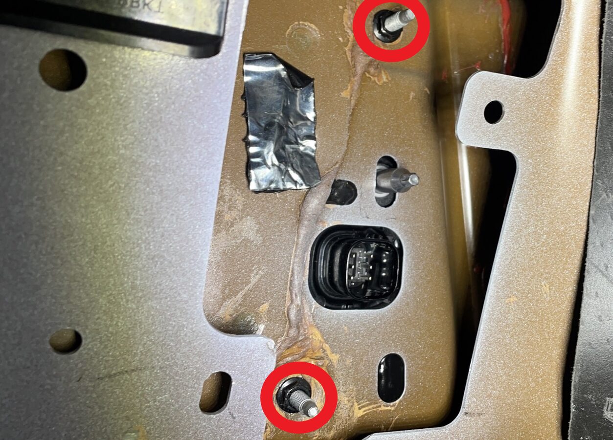 Note4x bolts, 10mm, 7 Nm, 2x datums, Note the charge port is bolted to the charge port door and lines up with 2 datums